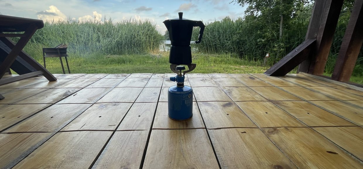 Šī bija arī pirmā vieta, kur taisīju kafiju, interesantā kafijas aparātā uz gāzes baloniņa. Vai var būt kas skaistāks? Sēdi pretī ezeram un vakarpusē baudi kafiju. Starpcitu, tagad šāds kafijas aparāts arī man ir mājās.